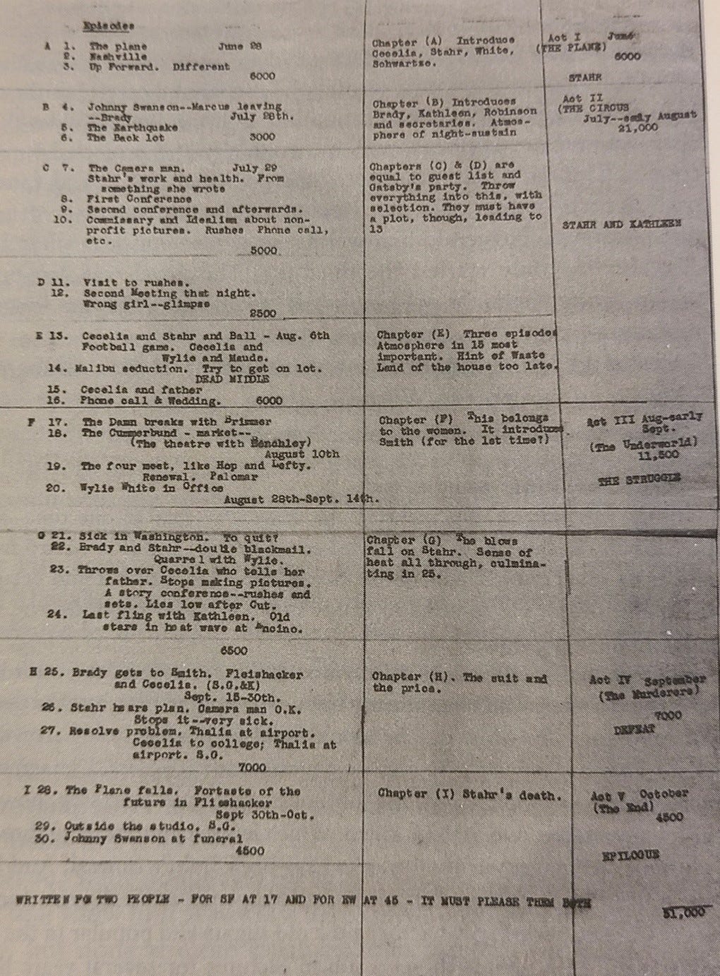 The outline would end up being invaluable for his editors and later scholars trying to work out where the novel would have gone, had Fitzgerald not died before finishing it.